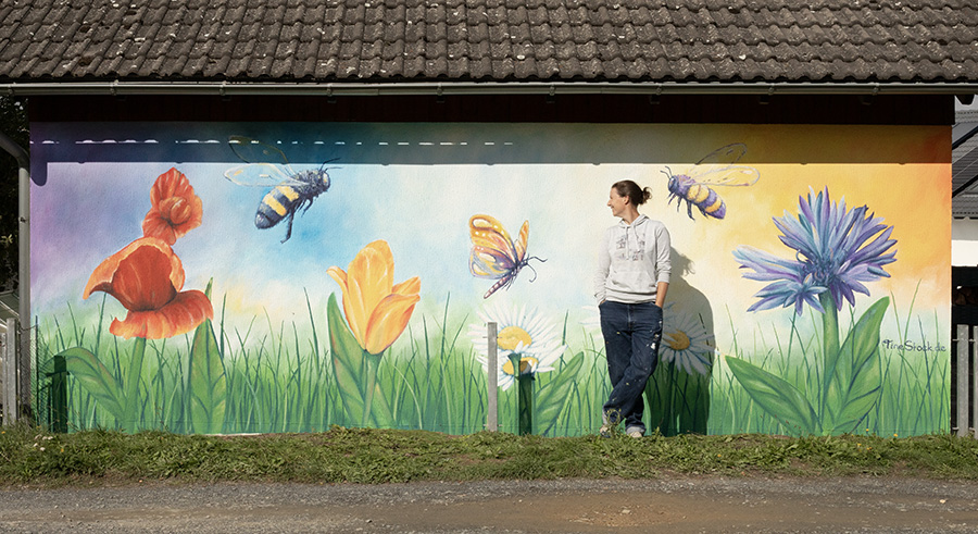 Ich reise durch ganz Deutschland für Wandmalerei Auftragsarbeiten und kreiere farbenfrohe Bilder voller Mut und Lebensfreude.
