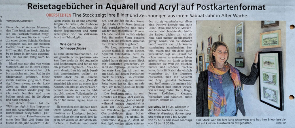 Ausstellungen gabs schon während des Studiums, die sind aber auch in meiner Lehrerzeit eingeschlafen und dann gabs 2022 ein Re-Debüt mit der Ausstellung meiner 360 im Sabbatjahr gemalten Postkarten in der Alten Wache in Oberstedten.