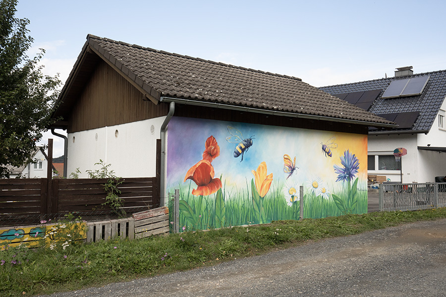 Mit Spraydosen und Fassadenfarben entstehen Wandmalereien auf Hausfassaden, Garagen oder Gartenmauern.